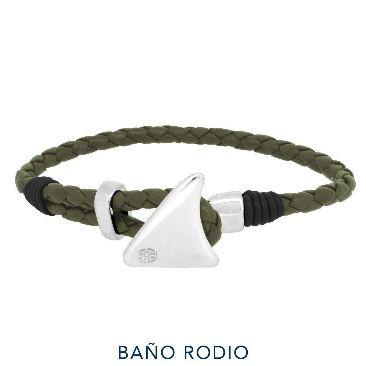 Nappina Nappa Olive Black Leather Rhodium Plated Shark Fin
